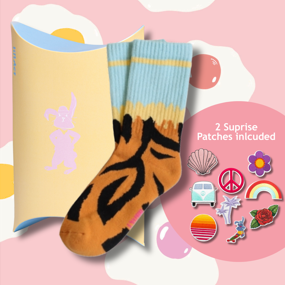 Tiger Tyra är redo att smyga in i påskägget – tillsammans med två roliga surprise patches och vår färgglada Lillster-påsklåda.