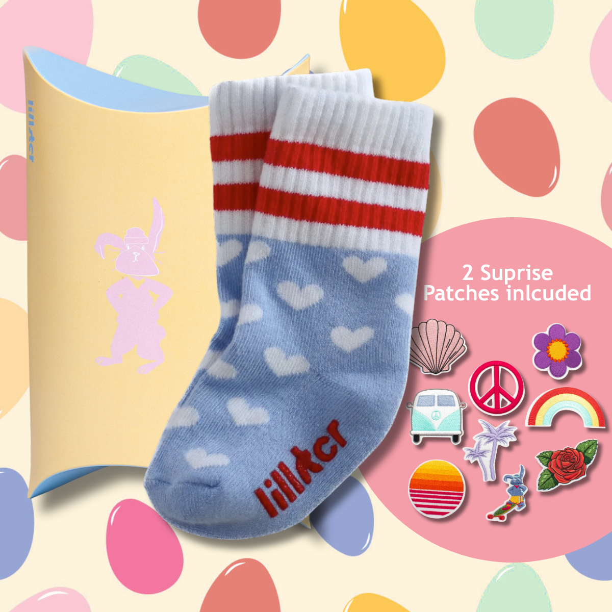Hearty Heaven är mjuka, lekfulla och redo för alla små påskäventyr. I kitet ingår också två surprise patches och vår färgglada Lillster-påsklåda.